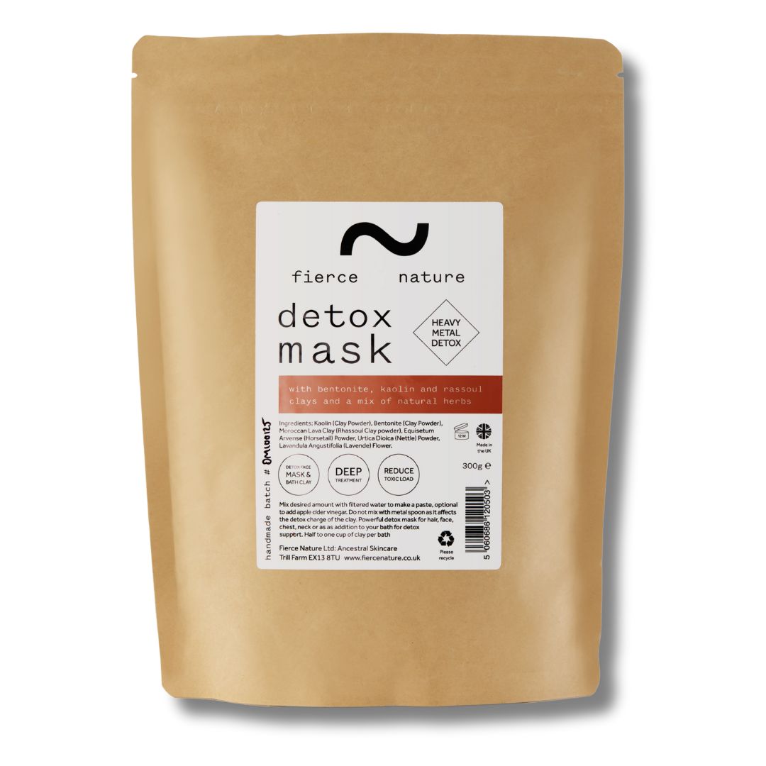 Fierce Nature Detox Mask is a multi-purpose, all-natural treatment for hair, face, body, and bath. Made with bentonite, kaolin, and Moroccan rhassoul clays, it draws out impurities, balances oil, and restores vitality. This mineral-rich blend strengthens hair, purifies pores, and soothes skin conditions like acne, rashes, and irritation — offering a full-body detox straight from nature.